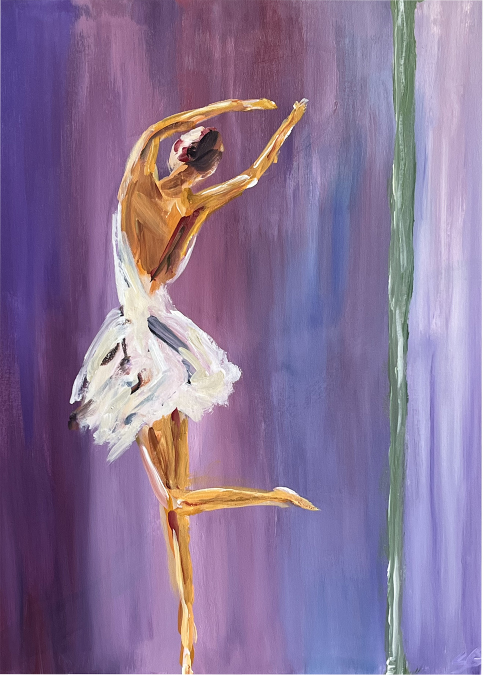 Malerierne (unika) er alle akryl på lærred eller specialpapir. De er i forskellig størrelse. En del er udstillet på Galleri QUISTGAARD i Lønstrup.